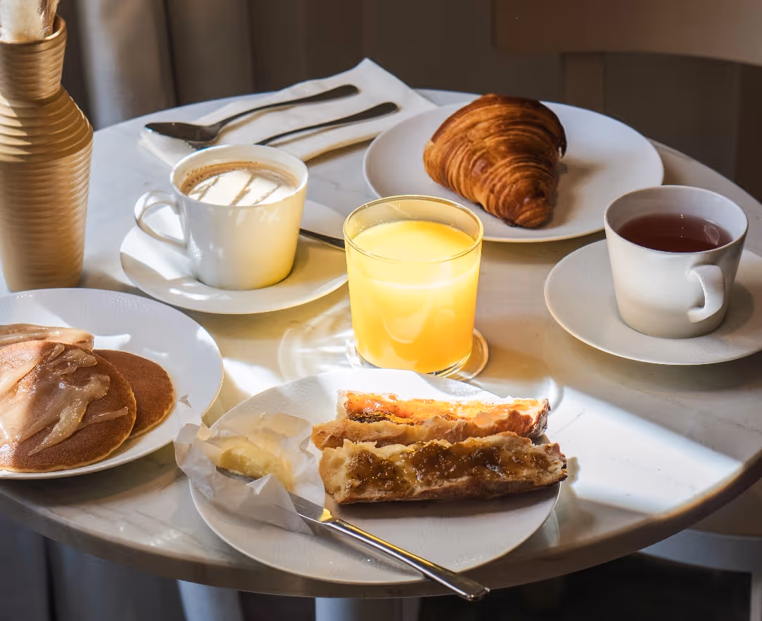 Commencez votre matinée dans notre salle voûtée et profitez d’un petit-déjeuner d’exception, servi chaque jour de 7h à 10h30.